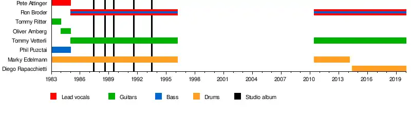 - Ron Broder (as Ron Royce) – lead vocals, bass (1985–1996, 2010–present)