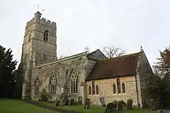 The Parish Church is dedicated to St Peter and St Paul and parts date from the 13th century but is described by Pevsner as: badly over-restored...the result of E F Law trying to regothicize what had been made plain Georgian in 1770-4.[3] There is a memorial to Pulter Forester (d.1778). The tower is over 70 feet tall and contains six bells with one ‘Santa Maria’ dating to the 15th century.[4]
