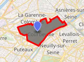 Courbevoie (French: [kuʁ.bə.vwa]) is a commune located in the Hauts-de-Seine Department of the Île-de-France region of France. It is in the suburbs of the city of Paris, 8.2 km (5.1 mi) from the center of Paris. The centre of Courbevoie is situated 2 km (1.2 mi) from the city limits of Paris.