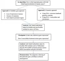 CpG island hypermethylation is an epigenetic control aberration that is important for gene inactivation in cancer cells. Hypermethylation of CpG islands has been described in almost every type of tumor. Many important cellular pathways, such as DNA repair (hMLH1, for example), cell cycle (p14ARF), apoptosis (DAPK), cell adherence (CDH1, CDH13), are inactivated by this epigenetic lesion.[1] Hypermethylation is linked to methyl-binding proteins, DNA methyltransferases and histone deacetylase, but the degree to which this process selectively silences tumor suppressor genes remains a vibrant field of study. The list for hypermethylated genes is growing and functional and genetic studies are being performed to determine which hypermethylation events are relevant for tumorigenesis. Basic as well as translational research will be needed to understand the mechanisms and roles of CpG island hypermethylation in cancer.