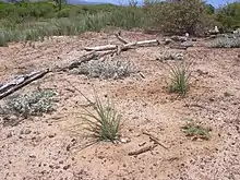 The rhizomatous glaucous perennial sedge typically grows to a height of 0.6 to 1.2 metres (2.0 to 3.9 ft) and has a tufted habit. The plant blooms between January and August producing brown flowers.[2] The culms are obtusely trigonous and densely papillose. The leaves are long and flat on top while folded at the base and around 2 to 13 millimetres (0.08 to 0.51 in) in width. The compound inflorescences have between six and twelve primary rays which are up to 8 cm 8 centimetres (3.1 in) in length.[3]