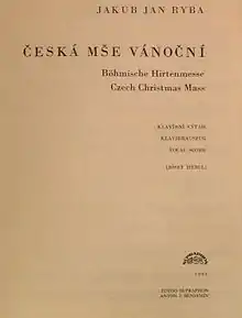 Czech Christmas Mass (Czech: Česká mše vánoční; Latin: Missa solemnis Festis Nativitatis D. J. Ch. accommodata in linguam bohemicam musikamque redacta – que redacta per Jac. Joa. Ryba) is a pastoral mass written by the Czech composer Jakub Jan Ryba in 1796, a mass in name only and thus an anomalous example of its genre (Missa pastoralis, less often Missa pastoritia). Because of its opening words, it is also known as Hail, Master! or Hey, Master! (in Czech: Hej, mistře!). Czech Christmas Mass was composed following the outlines of the Latin Catholic mass (with movements titled Kyrie, Gloria etc.), but containing a narrative based on the theme of the birth of Jesus of Nazareth. Accordingly the work draws on traditions of Central-European Christmas pastoral music and dramatizes the nativity through characters representative of the Czech countryside. Its early performance history is little studied, but over time the composition achieved an extraordinary popularity among Czechs at home and abroad, a veritable musical symbol of the Czech celebration of Christmas.[1][2]