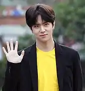 D-Day and "Sunset" were concurrently released on June 19.[32] The music video for the track was directed by Hong Won-ki.[5] Hosted by MC Dingdong, Kim held a showcase for the mini-album at the Shinhan Card Fan Square Live Hall in the Hapjeong-dong neighborhood of Seoul that same day.[13][33] Kim began promoting "Sunset" on weekly music chart shows two days later.[34] He performed the single on Mnet's M Countdown,[35] KBS2's Music Bank,[36] Munhwa Broadcasting Corporation's (MBC) Show! Music Core,[37] Seoul Broadcasting System's (SBS) Inkigayo,[38] SBS MTV's The Show,[39] and MBC Every 1's Show Champion.[40] He also performed the single and "Ain't No Time" on SBS funE's live concert music program The Stage Big Pleasure.[41] In support of D-Day, Kim held fan meetings in Thailand, Japan, South Korea, and Taiwan from July to November.[42][43][44][45]
