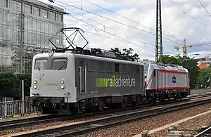 ![]() 139 558-1 of RailAdventure GMBH at Dresden Hbf with Israel Railways' TRAXX locomotive, 1 June 2017 | |||||||||||||||||||||||