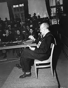 Friedrich Wetzel (seen from the back with number 40) during the delivery of the verdict on 13 December 1945