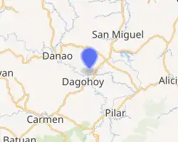 Dagohoy, officially the Municipality of Dagohoy (Cebuano: Lungsod sa Dagohoy; Tagalog: Bayan ng Dagohoy), is a 5th class municipality in the province of Bohol, Philippines. According to the 2015 census, it has a population of 19,158 people. [3]