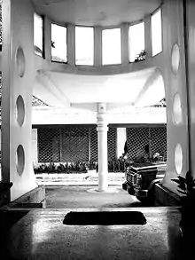 The home of Generoso M. Villanueva, a prominent sugar planter, and his wife Paz took three years to build from 1933-1936. It was the first art deco[2] structure to be built in Bacolod. Designed solely by the owner and built by Cebu engineer Salvador Cinco, the three-story, poured-concrete steel reinforced building with graceful curved balconies, parapets, and porthole steel-cased windows looks like the Titanic on land. It was known among the locals as the Boat House. Among family, though, it was simply called Daku Balay (the big house).[3]