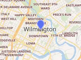 The building was built in 1916 to replace an older courthouse. It was designed to accommodate local courts, the administration of the city of Wilmington, and the administration of New Castle County. It was built in the neoclassical style of architecture, typical of courthouse construction in the period, and was used for many years as Wilmington's courthouse as well as by the city and country governments.[1][2] It was originally named the Public Building, but was renamed the Daniel L. Herrmann Courthouse in 1996 in honor of Delaware Supreme Court Chief Justice Daniel L. Herrmann. In 2002 the building was deemed incapable of meeting its role as a courthouse and once again a new courthouse was built. The City and country governments had moved to a new building several years before. The building was purchased by a credit card company, MBNA, and left vacant. Herrmann's name was removed from the building. Prominent Wilmington law firm Young Conaway Stargatt & Taylor became the building's tenant in 2012 and renovated the building, adding an outdoor plaza and a parking garage.[1][2]