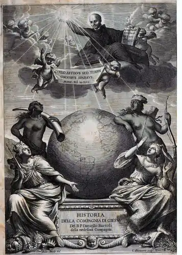 The remarkable success of Bartoli's literary debut coincided with the triumph of the High Baroque in Rome and it serves as a testament to the formative role of the Italian Jesuits as cultural entrepreneurs meditating between the sacred and the profane elements of the age. L'huomo di lettere (1645) became a cultural vademecum for the aspirations of a new generation of humanist intellectuals. Its eloquence and erudition found a lively balance between devotion to antiquity and consciousness of the modern. In Italy it was a bestseller. During the decades of Bartoli's life that followed, the work had editions and reprints nearly annually in Rome, Bologna, Florence, Milan and especially Venice. In the same period there were translations in French, German, English, Latin, Spanish and later Dutch. But history was his main task as a Jesuit man of letters. As such Bartoli represents the shift from the preceding Latin humanist historiography of Niccolò Orlandini and Francesco Sacchini to the illustrious Jesuit prose tradition he established in Italian when he undertook the official history of the first century of the Society of Jesus (1540). His monumental Istoria della Compagnia di Gesu (Rome, 1650–1673), in 6 folio vols. is the longest Italian classic. It begins with an authoritative, if somewhat ponderous, biography of the founder Ignatius Loyola.[9] Particularly fascinating and exotic are his histories of Francis Xavier and the Jesuit missions in the East which describe India and the opening of the East, L'Asia (1653) in eight books. A shorter work on Akbar the Great and Rodolfo Acquaviva came out in 1653 and was added to the third edition of L'Asia in 1667.[10] Part II of the first corner of the world he completed was Japan, Il Giappone (1660) in five books, and the Part III on China, La Cina appeared in four books (1663). To these he opened his projected Europa with the missions on the Jesuits in England, L'Inghilterra (1667) and a final work on the opening years of the order in the Italy of St. Ignatius, Diego Laynez and Francis Borgia, L'Italia (1673). With these histories he alternated treatises on language use, Del torto e del diritto del non si può[11] and moral works of like La Ricreazione del savio.[12] In the 1660s the Lyons Jesuit Louis Janin, translator of L'huomo di lettere issued Latin translations of these histories. From 1671 to 1674 Bartoli served as Rector of the Collegio Romano in recognition of his international prestige as a writer. Indefatigible in his final years Bartoli produced 4 Jesuit biographies and three scientific treatises on pressure, sound, coagulation. His several works of spiritual reflection were brought together a folio edition, Le Morali in 1684. His final work, Pensieri sacri[13] went to press after his death in Rome, January 13, 1685.