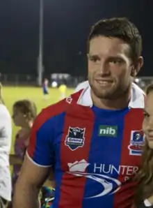 Danny Buderus (born 6 February 1978) is an Australian rugby league commentator, coach and former professional footballer who played in the 1990s, 2000s and 2010s. An Australian international and New South Wales State of Origin representative hooker, he played in the National Rugby League for Australian club, the Newcastle Knights, with whom he won a Dally M Medal, and the 2001 NRL Premiership before setting a new record for most games with the club. Buderus also played in the Super League for English club, the Leeds Rhinos, with whom he won 2011's Super League XVI. He set the record for most appearances as captain of the New South Wales State of Origin team at 15 and for most consecutive appearances for the side at 21. Buderus also played representative football for the Exiles and New South Wales Country. In 2015, he took up an interim coaching role with the Knights and continued as an assistant coach in 2016.