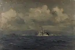 Dazzle attracted the notice of artists such as Picasso, who claimed that Cubists like himself had invented it.[3] Edward Wadsworth, who supervised the camouflaging of over 2,000 ships during the First World War, painted a series of canvases of dazzle ships[lower-alpha 2][4][5][6][7] after the war, based on his wartime work. Arthur Lismer similarly painted a series of dazzle ship canvases.