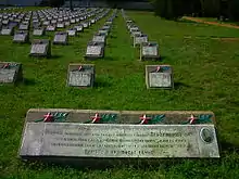 The German forces surrounded the quarries with barbed wire fencing, blocked the entrances and exits and bombed and shelled them. General Hermann Ochsner, chief of the chemical forces, proposed that a non-lethal irritant gas be used to smoke the partisans out of such hiding places. Permission to carry out the attack was denied,[1] however survivors' testimonies claimed otherwise.[2][3][4]