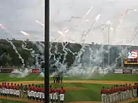 On June 30 the park hosted local Little League championship games before the Billings Mustangs and Great Falls Voyagers met in the first professional baseball game at the park on July 1.[8] The Mustangs won a rain-soaked 9–7 game highlighted by a Michael Konstanty grand slam which stands as the first professional homer at the field. Attendance for the game was 3,749.[9]
