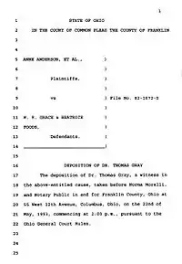- "Stenographers copy of an expert's deposition in Anderson v. Cryovac landmark case".