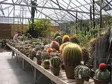 The Desert Garden Conservatory is a large botanical greenhouse and part of the Huntington Library, Art Collections and Botanical Gardens, in San Marino, California.[1] It was constructed in 1985. The Desert Garden Conservatory is adjacent to the 10-acre (40,000 m2) Huntington Desert Garden itself. The Garden houses one of the most important collections of cacti and other succulent plants in the world, including a large number of rare and endangered species. The 3,000-square-foot (280 m2) Desert Garden Conservatory serves The Huntington and public communities as a conservation facility, research resource and genetic diversity preserve. John N. Trager is the Desert Collection curator.