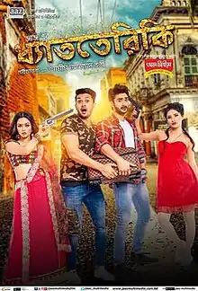 Dhat Teri Ki is a Bangladeshi romance comedy film directed by Shamim Ahamed Roni and produced by Abdul Aziz under the banner of Jaaz Multimedia. the film features Arifin Shuvoo, Nusrat Faria, Ziaul Roshan and Farin Khan in lead roles.[1][2] The movie is a remake of 2012 Punjabi movie Carry On Jatta which itself was loosely based on 1989 Malayalam movie Chakkikotha Chankaran.[3][4][5][6]