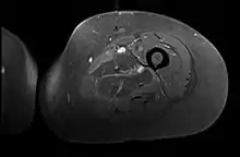 Diabetic myonecrosis is a complication of diabetes. It is caused by infarcted muscle tissue, usually in the thigh.[1]