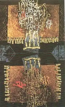 The geometric phase was his most characteristic phase. In this phase, he synchronized dialogue with Byzantine and Macedonian folk tradition.[4] His more recent work had a tendency to synthesize carefully selected sequences of the spiritual - the aesthetic and plastic repertoire of medieval art and those forms of nonfigurative and associated art, as it tradicionalist tissue could allow modern cohesion. His painting was a complex composite assemblage, with delicate and formal structures using various aesthetic and visual data, in order to become a work of art autonomous aesthetic phenomenon. These are bands that resemble the cult, sacred objects: through them constantly goes to a modern sense of the artist's inner needs, spiritual ritual, and aesthetics of these pieces to fit into the current art movement, the meditative and skeptics understanding of the world.[1]