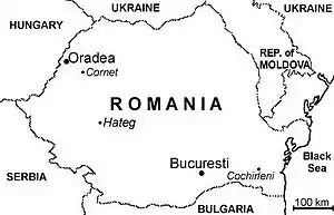 The dinosaurs of Romania are exclusively Cretaceous. Lowermost Cretaceous dinosaurs come from a bauxite mine in the Bihor County (northwest Romania) that has yielded thousands of disarticulated bones. Uppermost Cretaceous dinosaurs have been known from the Hațeg Basin (south Transylvania) since the end of the 19th century, mostly as bone concentrations (fossiliferous pockets); more recently, nests with dinosaur eggs, including hatchlings, have been found in Hațeg. Although separated by a gap of approximately 60 million years, the two dinosaur faunas from Romania share some common features: predominance of ornithopods, absence of large theropods (although the Maastrichtian Hațeg assemblage has several small theropods), and, in general, the small size of the individuals (see also insular dwarfism).