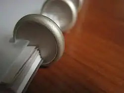 Disc-binding is a type of notebook binding that uses discs to hold the sheets of paper. Each disc has a raised edge. Notebook sheets have perforations along the binding edge that match the profile and spacing of the binding discs.