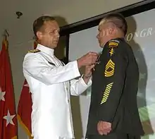 | Equivalent | Navy and Marine Corps: Navy Cross Air Force and Space Force: Air Force Cross Coast Guard: Coast Guard Cross Unit award: Presidential Unit Citation Civilian: Secretary of Defense Medal for Valor[3] |