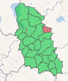 Dnovsky District (Russian: Дно́вский райо́н) is an administrative[1] and municipal[2] district (raion), one of the twenty-four in Pskov Oblast, Russia. It is located in the east of the oblast and borders with Soletsky District of Novgorod Oblast in the northeast, Volotovsky District, also of Novgorod Oblast, in the east, Dedovichsky District in the south, and with Porkhovsky District in the west. The area of the district is 1,194 square kilometers (461 sq mi).[3] Its administrative center is the town of Dno.[2] Population: 13,341 (2010 Census);[4] 16,048 (2002 Census);[7] 20,110 (1989 Census).[8] The population of Dno accounts for 67.9% of the district's total population.[4]