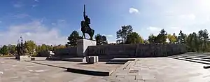 According to the peace treaty of 681, signed after the Bulgarian victory over Byzantines in the Battle of Ongala, Dobruja became part of the First Bulgarian Empire.[34] Shortly after, the Bulgar founded the city of Pliska, which became the first Bulgarian capital, near the southern border of Dobruja.[35] They rebuilt Madara as a major Bulgar pagan religious centre.[36] According to the Bulgarian Apocryphal Chronicle, from the 11th century, Bulgarian Tsar Ispor "accepted the Bulgarian tsardom", created "great cities, Drastar on the Danube", a "great wall from Danube to the sea", "the city of Pliska" and "populated the lands of Karvuna".[37]