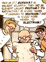 Thaddeus Bodog Sivana,[8] born in 1892,[9] began with the best intentions and was one of Europe's best scientific minds, with progressive scientific ideas that could revolutionize industry but were rejected by everyone he approached. Laughed out of society by people who called his inventions impractical and his science a fake, Sivana took his family to the planet Venus in a spaceship he had invented.[10] There he stayed until his children were grown, and Earth not as backward as when he left it. (Since his children were adults by 1940, his departure from Earth would implicitly have been the late 1910s or early 1920s.) During his years away, struggling to tame the Venusian jungle, Sivana turned bitter and planned his revenge against the world that had shunned him.[11] He initially plotted his revenge with a radio silencer that would disable all radio communications permanently. He tried to extort $50 million, only to be stopped by Captain Marvel in his first adventure. Cap broke through the window of the building where Sivana was hiding and defeated the guards, binding them securely with tubing ripped from the radio-silencer.[12] Sivana planned to kill Captain Marvel with a blast from his Atom-Smasher, but Cap leaped back out the window and escaped. During the fight, Sivana's returning army angrily asked why Captain Marvel had defeated them in their war against America despite their highly advanced weaponry.[13] Sivana appeared to have been killed by the Atom-Smasher blast, but he returned a short time later, having somehow learned Captain Marvel's identity. He sent a letter to Billy Batson to lure him to the planet Venus, disguising himself as 'Professor Xerxes Smith'.[14] Sivana's henchmen bound and gagged Batson, and Sivana tried to take away his memory using a Memory Mangler. Billy regained his memory after stumbling into the cave of Shazam and accidentally saying the word "Shazam". Sivana's henchmen rebelled against him and set off an explosion that destroyed the Mangler. Ironically, Captain Marvel saved Sivana and his daughter Beautia, who the henchmen had left to die.[15] Sivana continued to nurse a megalomaniacal grudge against humanity and also a personal enmity with the Marvel Family. This persisted even after Cap revealed Sivana's former benevolent inventions (which Sivana considered useless), leading to his being awarded the Nobel Prize for Physics. Far from being pleased, Sivana was insulted by the prize and stated that only when he was crowned Ruler of the Universe would he consider himself properly honored.[16]