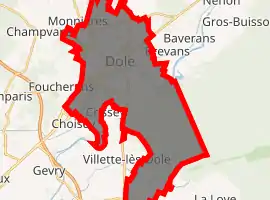 Dole (French: [dɔl][2] sometimes pronounced [dol][3]) is a commune in the Jura department in the Bourgogne-Franche-Comté region, in eastern France, of which it is a subprefecture (sous-préfecture).