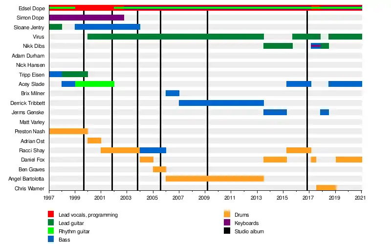 - Edsel Dope – lead vocals (1997–present), rhythm guitar (1997–1999, 2002–present), keyboards, programming (2002–2017, 2017–present)