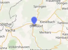 Dorndorf is a village and a former municipality in the Wartburgkreis district of Thuringia, Germany. Since 31 December 2013, it is part of the municipality Krayenberggemeinde.