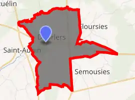 The arms of Dourlers are blazoned : Azure, a lion Or maintaining a key argent. (Dourlers, Pont-sur-Sambre and Rainsars use the same arms.) |