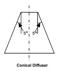 1. Conical diffuser or straight divergent tube-This type of draft tube consists of a conical diffuser with half angle generally less than equal to 10° to prevent flow separation. It is usually employed for low specific speed, vertical shaft francis turbine. Efficiency of this type of draft tube is 90%