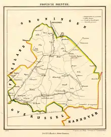 listen); German: Drenthe) is a province of the Netherlands located in the northeastern part of the country. It is bordered by Overijssel to the south, Friesland to the west, Groningen to the north, and the German state of Lower Saxony to the east. As of November 2019, Drenthe had a population of 493,449[4] and a total area of 2,680 km2 (1,030 sq mi).