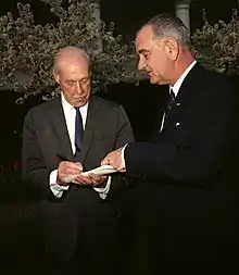 ![]() Pearson with Lyndon Johnson in 1964 | |