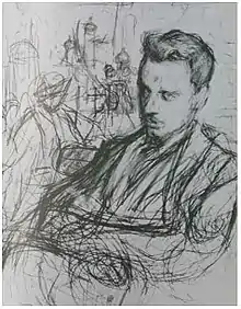 In 1912, Austrian-Bohemian writer and poet Rainer Maria Rilke (1875-1926) began to write portions of his famous work, Duino Elegies, while visiting Duino Castle as a guest of the Princess Marie von Thurn und Taxis (born Princess of Hohenlohe).[1] While walking along the cliffs overlooking the Adriatic Sea near the castle, Rilke claimed to hear a voice calling to him speaking the words of the first line, Wer, wenn ich schriee, hörte mich denn aus der Engel Ordnungen? ("Who, if I cried out, would hear me among the hierarchies of angels?") which he quickly wrote in his notebook. Within days, he produced drafts of the first two elegies in the series (of ten) and drafted passages and fragments that would later be incorporated into later elegies—including the opening passage of the tenth elegy.[2][3] The Duino Elegies are recognized by critics and scholars as his most important work and one of the chief transitional works between the apex of German Romanticism and Modernist poetry.[4][5] They are ten intensely religious, mystical poems that weigh beauty and existential suffering.[2] The poems employ a rich symbolism of angels and salvation, and are described as a metamorphosis of Rilke's "ontological torment" and an "impassioned monologue about coming to terms with human existence" discussing themes of "the limitations and insufficiency of the human condition and fractured human consciousness ... man's loneliness, the perfection of the angels, life and death, love and lovers, and the task of the poet".[6]