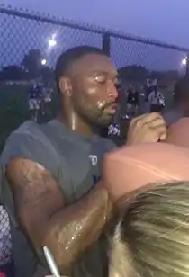Duke Calhoun (born September 1, 1987) is a former American football wide receiver. He played college football at the University of Memphis.[1] He was signed by the New York Giants as an undrafted free agent in the 2010 offseason and was waived by the Giants in the 2011 offseason. He signed with Oakland in April 2012.