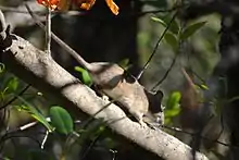 The dusky-footed woodrat (Neotoma fuscipes) is a species of nocturnal rodent in the family Cricetidae.[2] They are commonly called "packrats" or "trade rats" and build large, domed dens that can reach several feet in height. Coyotes and other predators will attempt to prey on these rodents by laying waste to the dens, but the sheer volume of material is usually dissuasive. Occasionally, dusky-footed woodrats will build satellite dens in trees. Although these animals are solitary, except in the mating season (when they are most vulnerable to predation), dens are frequently found in clusters of up to several dozen, forming rough "communities". The mating system in this species appears to be variable, with promiscuity most generally at high population densities and monogamy at lower densities.[3]