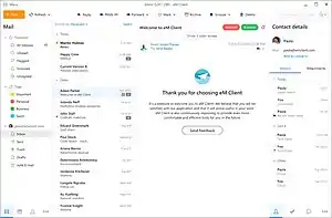 eM Client is a Windows and macOS based email client for sending and receiving emails, managing calendars, tasks, contacts,[1] and notes. Live chat is integrated as well.[2] It was developed as a user-friendly alternative to existing email clients and calendar solutions.