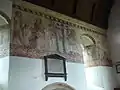 St Agatha’s Church (also called Easby Church)[2] is located outside of Richmond, Yorkshire, and can easily be reached from Richmond via the trail alongside the river. The exact foundation date of Easby Church is unknown, but it is thought to predate the neighbouring abbey. Little of the original church remains. St Agatha’s retains medieval frescoes that were preserved through the Reformation after being whitewashed. The church and abbey are open free of charge to the public.