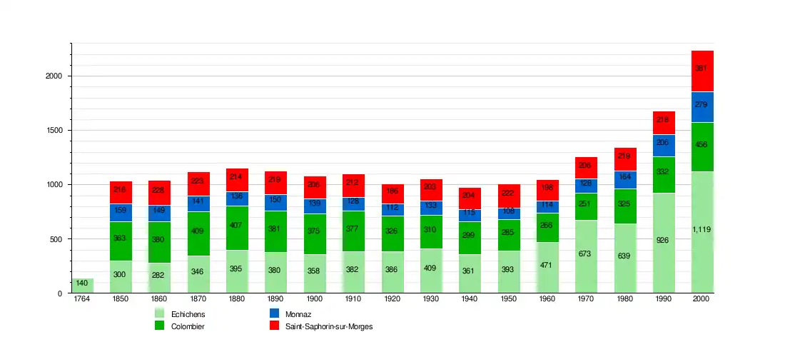 The municipalities of Colombier, Monnaz and Saint-Saphorin-sur-Morges merged on 1 July 2011 into the municipality of Echichens.[4]