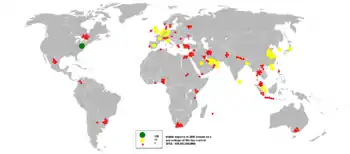 Other scholars suggest trading from India to West Asia and Eastern Europe was active between the 14th and 18th centuries.[103][104][105] During this period, Indian traders settled in Surakhani, a suburb of greater Baku, Azerbaijan. These traders built a Hindu temple, which suggests commerce was active and prosperous for Indians by the 17th century.[106][107][108][109]
