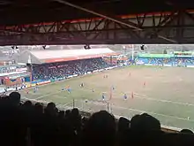 The Cheadle End behind the goal at the west end of the ground is the largest and most modern stand in the stadium, and one of the largest stands outside the Premier League.