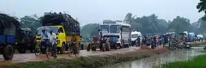 Meanwhile, in the north of the country, some of the bloodiest fighting since 2001 took place after the LTTE launched massive attacks on Sri Lanka Army defence lines in the Jaffna peninsula on August 11. The LTTE used a force of 400 to 500 fighters in the attacks which consisted of land and amphibious assaults, and also fired a barrage of artillery at government positions, including the key military airbase at Palali.[37] Initially, the Tigers broke through army defense lines around Muhamalai, and advanced further north,[38] but they were halted after 10 hours of fierce fighting. Isolated battles continued over the next few days, but the LTTE was forced to give up its offensive due to heavy casualties.[39]