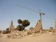 As the New Kingdom crumbled, the building of mortuary temples ceased and was never revived.[60] Some rulers of the Third Intermediate Period, such as those at Tanis,[61] were buried within the enclosures of divine temples, thus continuing the close link between temple and tomb.[62]