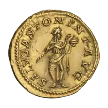 Under Elagabalus, the gradual devaluation of Roman aurei and denarii continued (with the silver purity of the denarius dropping from 58% to 46.5%),[60] though antoniniani had a higher metal content than under Caracalla.[61]