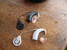 The parallel processing of these signals, however, is performed separately and optimized for both acoustic hearing (focusing on low-frequency hearing) and cochlear implant stimulation (focusing on high-frequency hearing). The hearing aid is integrated in the ear hook and the amplified signals are forwarded to the auditory pathway via an ear mould. The ear mould used for the acoustic component is similar to a conventional hearing aid ear mould and can be exchanged.