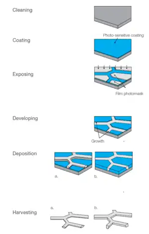 Compared to other basic metal forming processes (casting, forging, stamping, deep drawing, machining and fabricating) electroforming is very effective when requirements call for extreme tolerances, complexity or light weight. The precision and resolution inherent in the photo-lithographically produced conductive patterned substrate, allows finer geometries to be produced to tighter tolerances while maintaining superior edge definition with a near optical finish. Electroformed metal can be extremely pure, with superior properties over wrought metal due to its refined crystal structure. Multiple layers of electroformed metals can be bonded together, or to different substrate materials to produce complex structures with "grown-on" flanges and bosses.