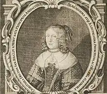 She died in 1664 and was initially buried in the chapel of the Schloss in Weimar. In 1824, her body was transferred to the new Ducal Crypt at Weimar.[3]