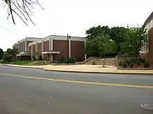 Midtown, also occasionally known as Uptown, is the main commercial district and a historic section as well. It includes the First Presbyterian Church[26] and St. John's Episcopal Church, and its St. John's Episcopal Churchyard. The First Presbyterian Church was a battleground for the American Revolution. Located here are also the 1931 Art Deco Hersh Tower,[44] the Thomas Jefferson Arts Academy, and the Ritz Theatre which has been operating since 1926. Midtown/Uptown includes the area once known as "Brittanville" which contained many English type gardens.